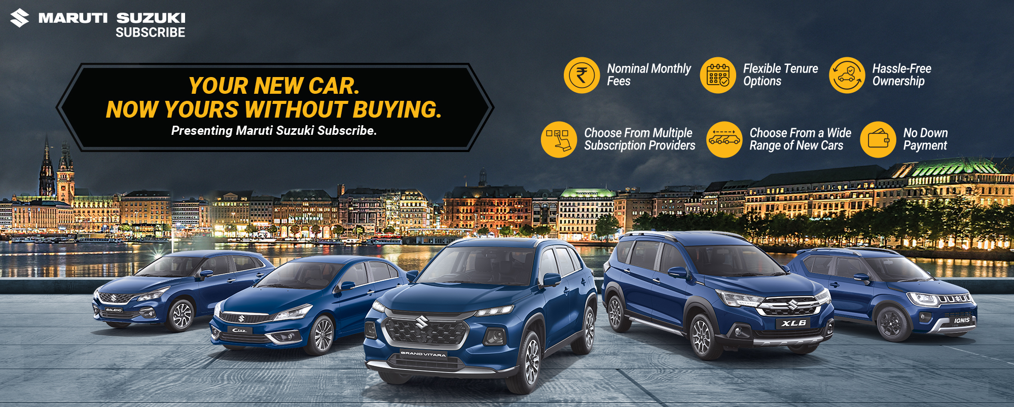 Maruti Suzuki Subscribe enables all customers to enjoy driving their preferred Maruti Suzuki cars without having to deal with all the financial responsibilities that come with owning a car.All you need to do is opt for a monthly subscription plan at a fixed monthly fee, which includes the routine maintenance and insurance costs, and choose a flexible tenure. At Paramashiva in, , Vijayawada, all Hatchback, Sedan, SUV, the MUV models line-up includes Baleno, Invicto, EVitara, Jimny, Ciaz, Ignis, Fronx, Grand Vitara, XL6. Here, you will enjoy Maruti Suzuki Subscribe benefits such as: